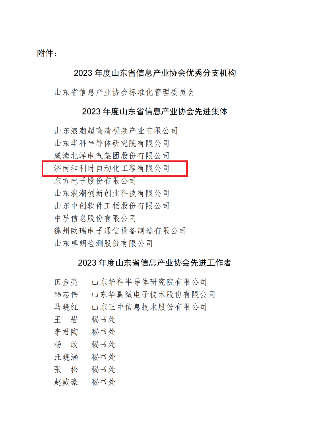 我公司榮獲2023年度山東省信息產業協會先進集體
